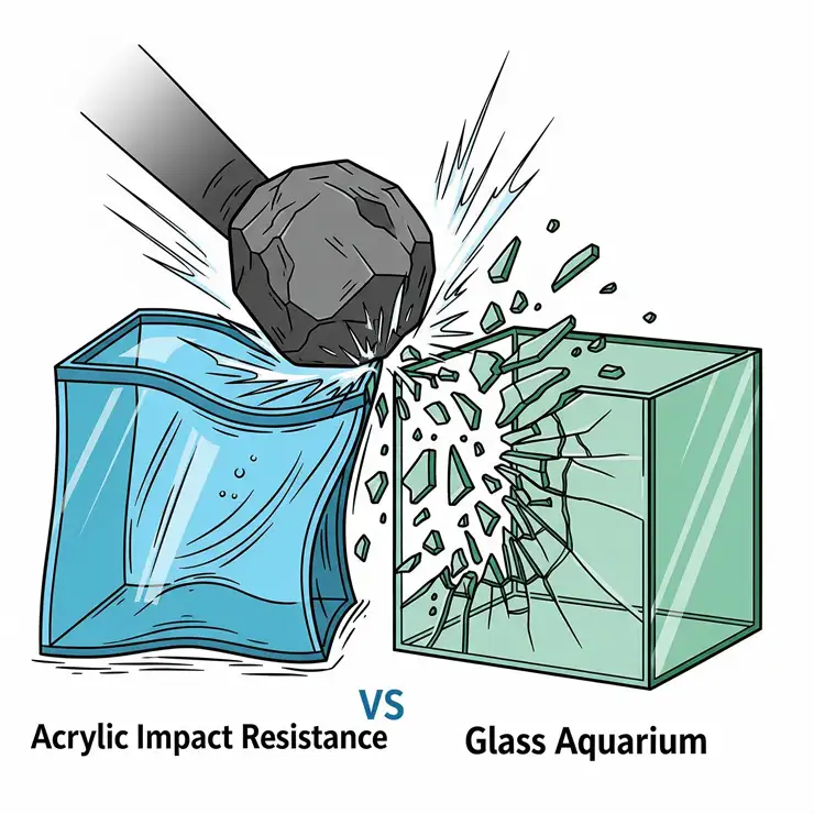 Acrylic’s flexibility allows it to absorb impacts that would shatter glass tanks instantly. Research from the American Society for Testing and Materials shows that acrylic can withstand impacts up to 17 times greater than glass before breaking.